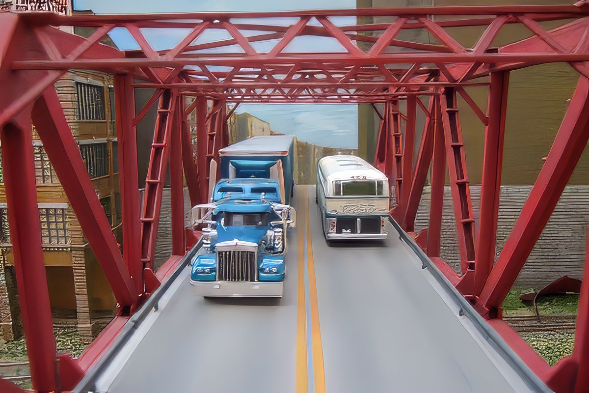 Bild 8 - Situation an der Brücke, die hier abgenommen wurde. Dem Haus im Vordergrund fehlt noch die endgültige Ausmalung.