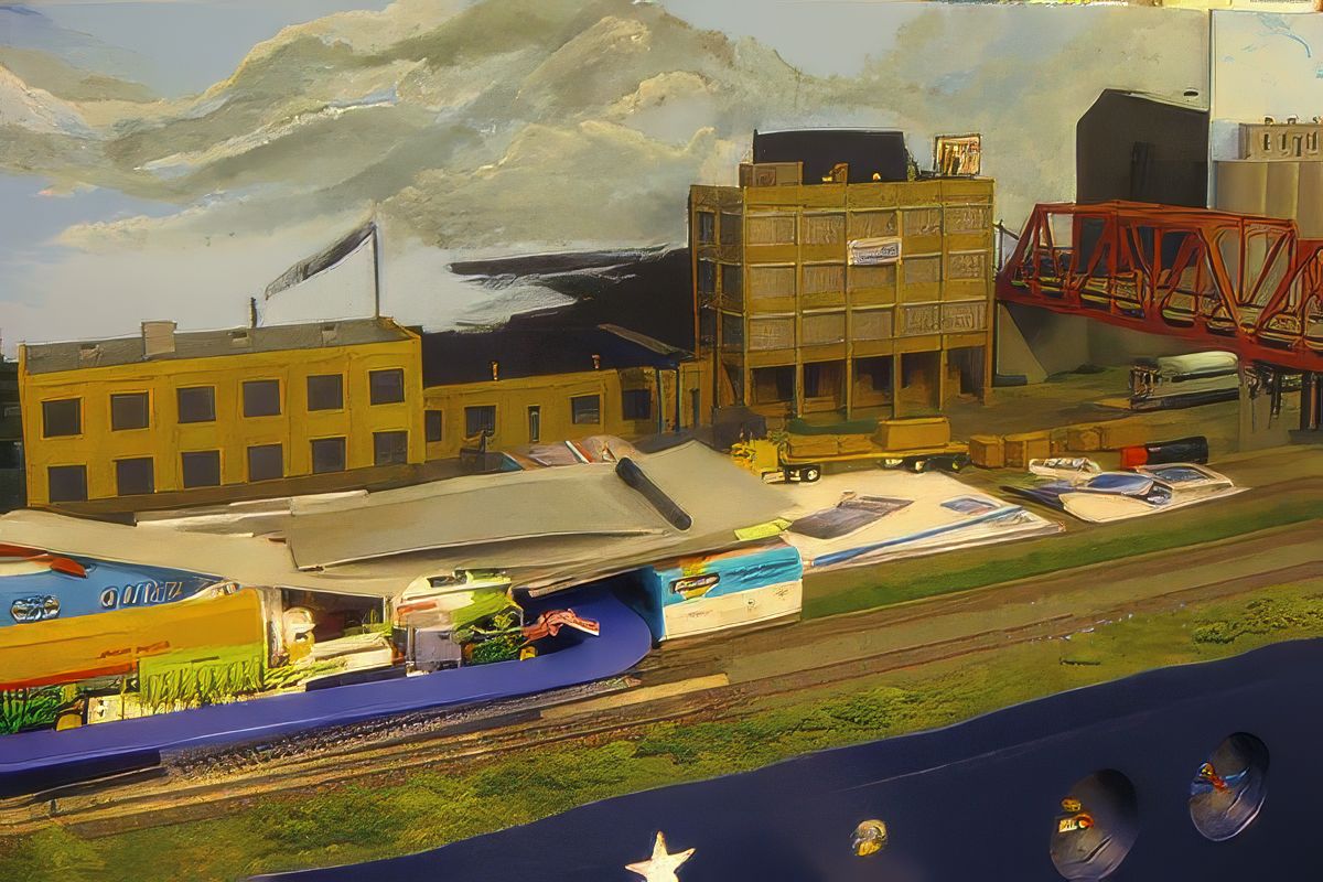 Bild 3 - Blick auf unsere Backwarenfabrik mit fertigem Hintergrund. Der gealtertete Big-Boy macht sich nun natürlich besonders gut.